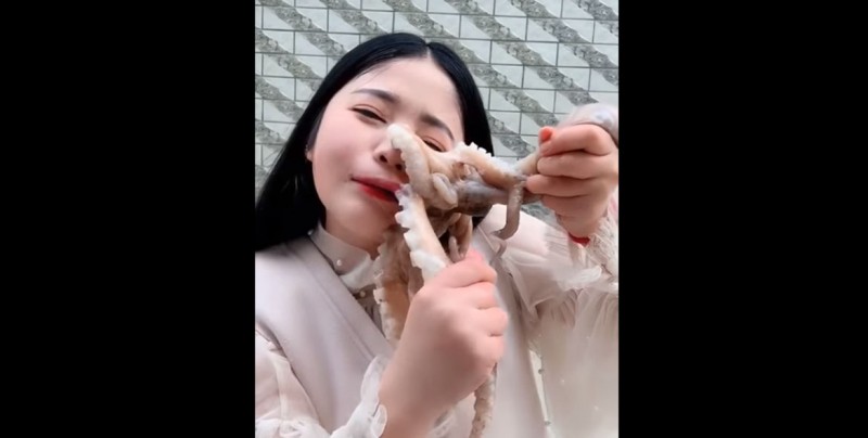 El el video, que dura menos de 1 minuto, el pulpo ya estaba pegado a su cara, pero ella no parecía tenerle miedo. Se la puede escuchar diciendo a sus fanáticos “miren lo duro que está succionando”, mientras intentaba quitar un tentáculo de su labio superior.